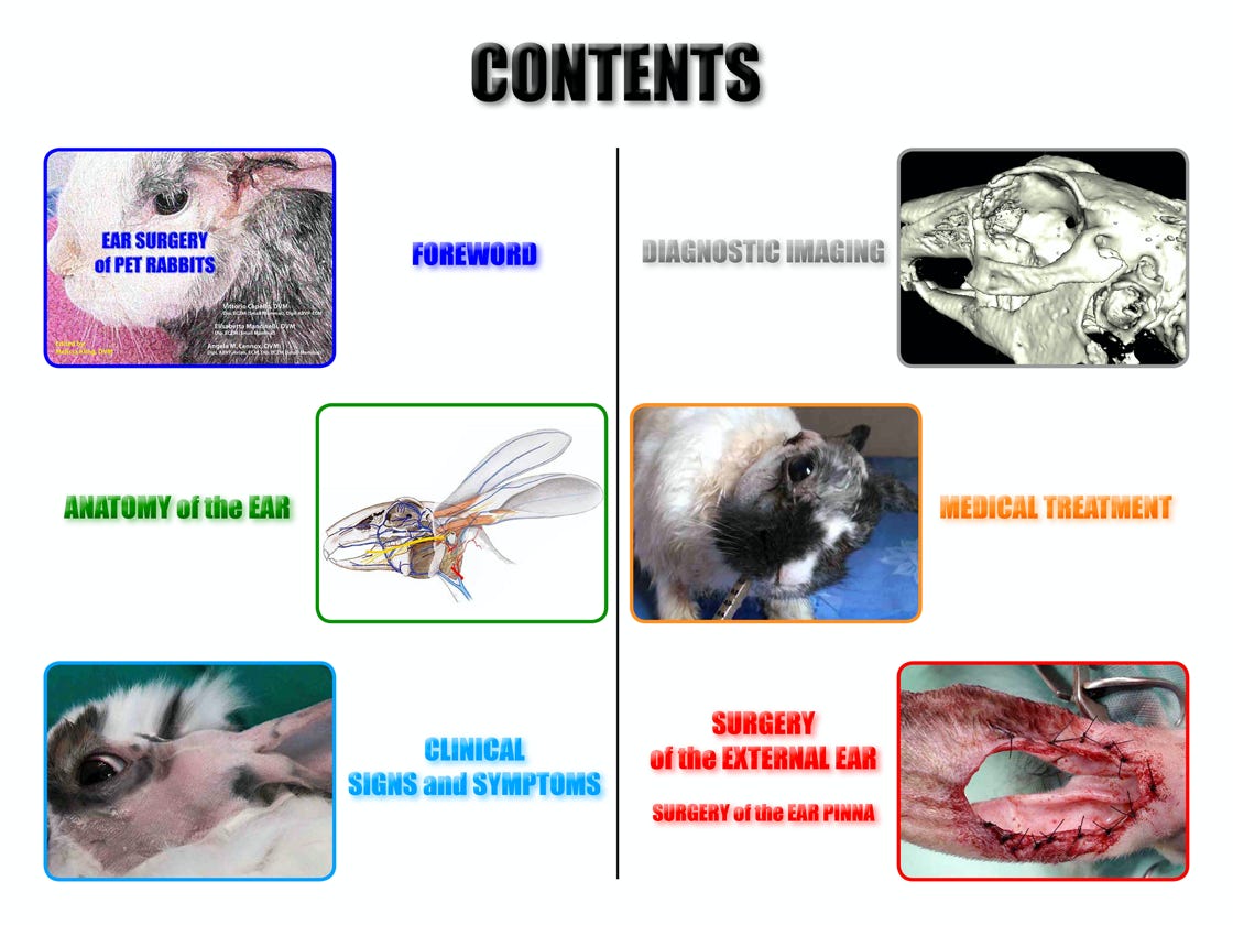For these reasons we are proud to introduce the first dynamic e-book specifically for exotic medicine. We also believe that the complicated topic of rabbit ear surgery will benefit from this format. 80 pages, almost 150 illustrations, and 50 minutes of video clip highlights are dedicated to rabbit ear disease, with a special emphasis on surgical treatment and the visual description of current techniques and approaches.